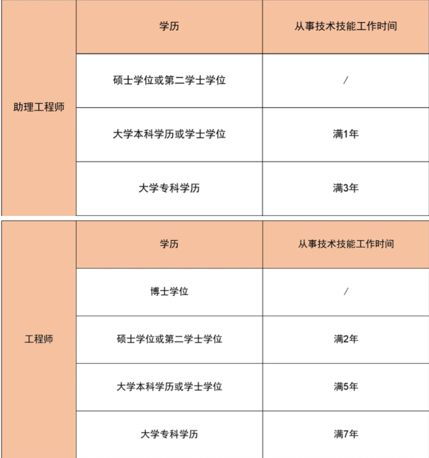 從系統(tǒng)外引進(jìn)的無職稱人才,可直接申報(bào)相應(yīng)層級(jí)的職稱評(píng)審,學(xué)歷、工作年限條件如下: